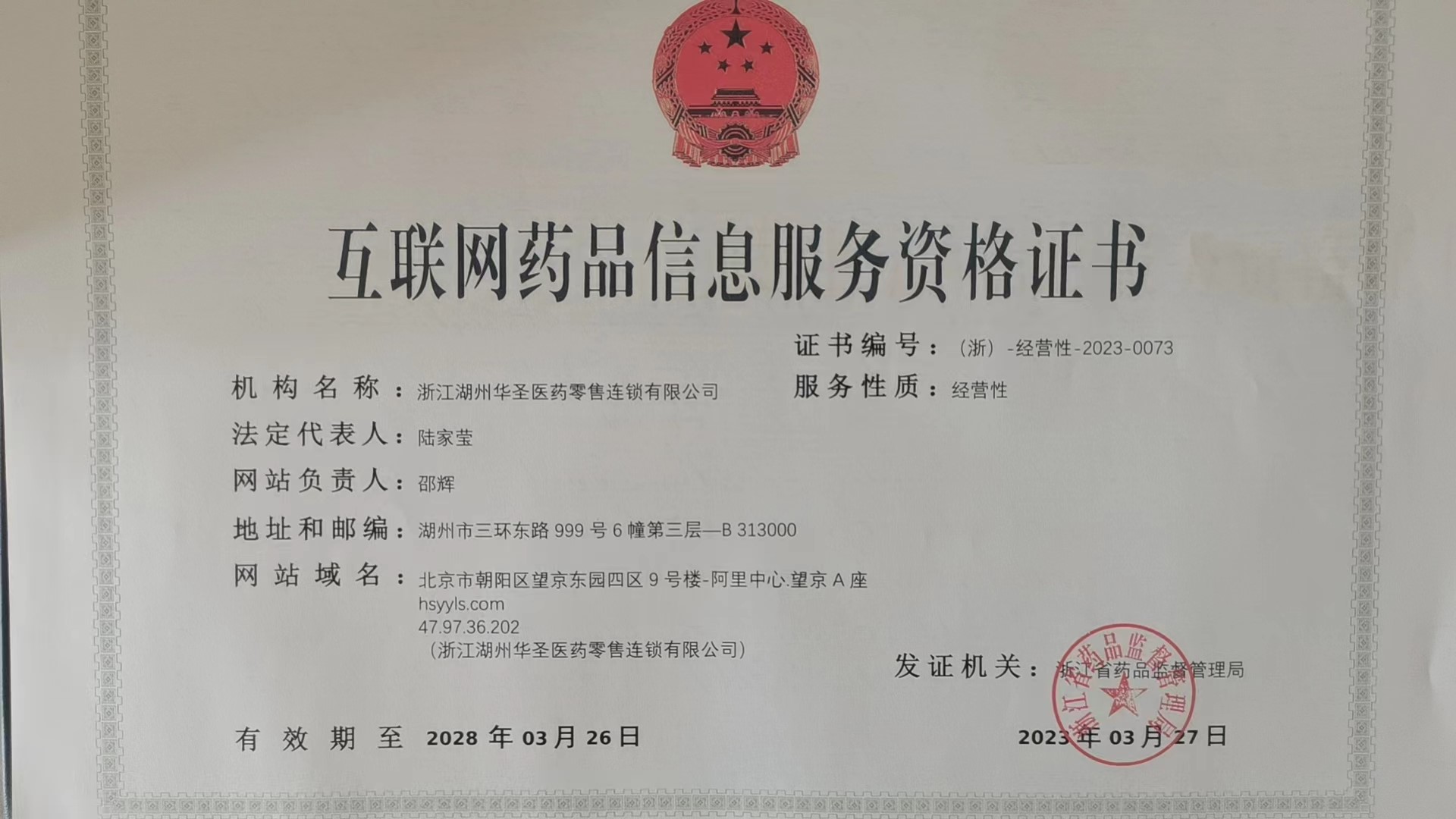 浙江湖州華圣醫藥零售連鎖有限公司