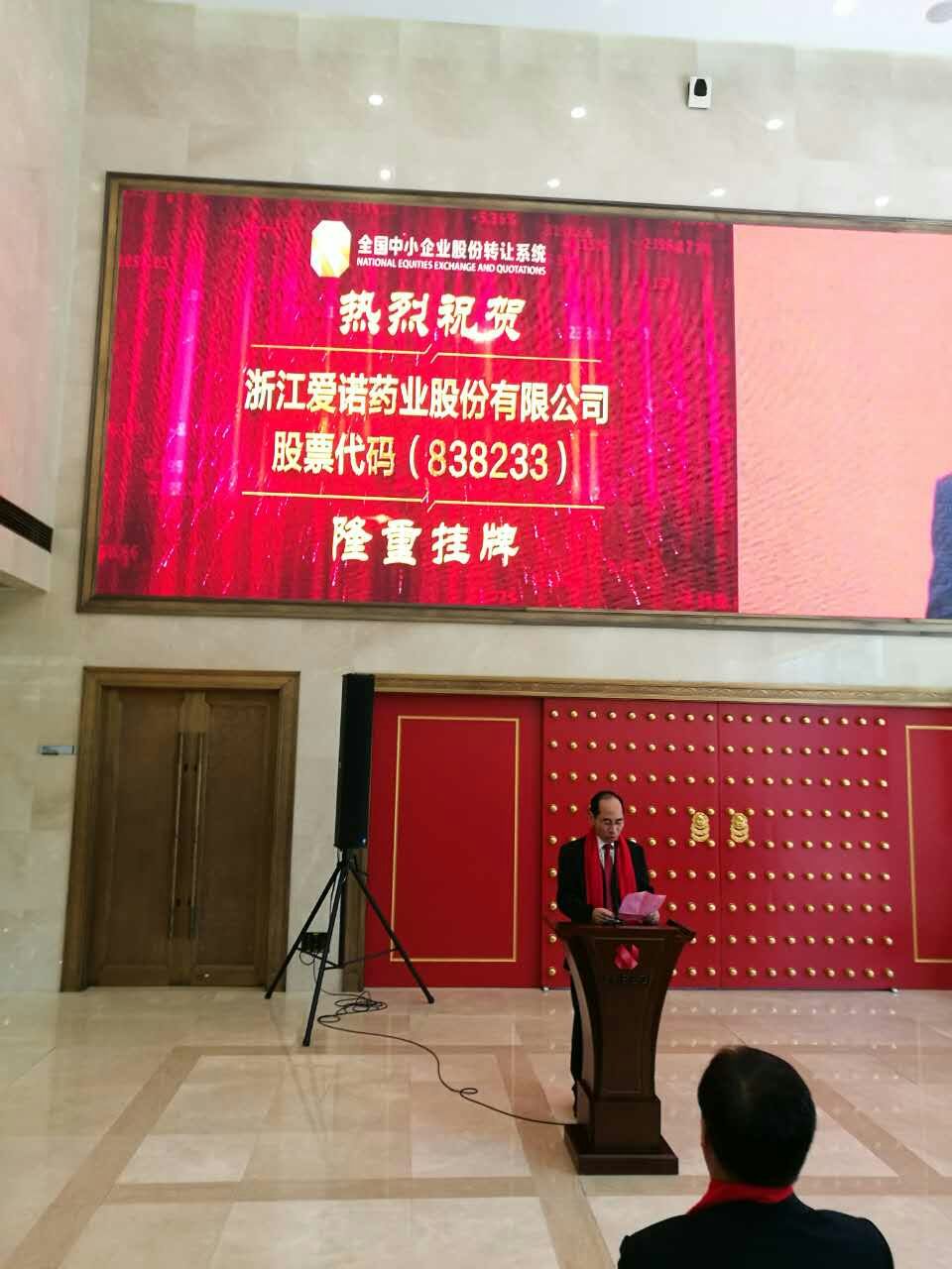 9月6日,浙江愛諾藥業股份有限公司(證券代碼:838233)在北京金融大街全國中小企業股份轉讓系統舉辦了新三板掛牌敲鐘儀式,浙江愛諾藥業股份有限公司董事長陸方明先生攜公司高管共同出席了掛牌儀式,見證了愛諾藥業這一里程碑時刻。